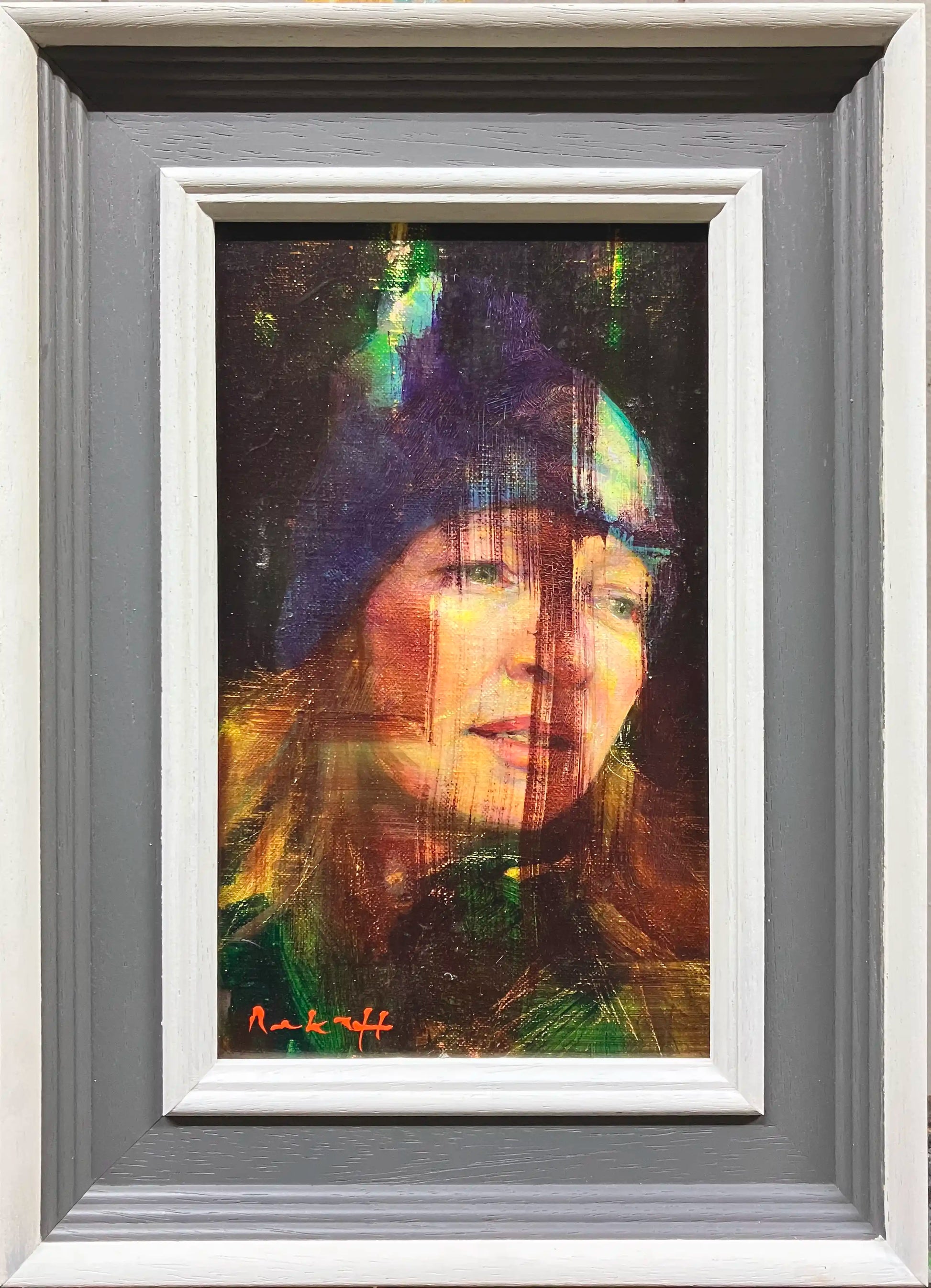 A captivating oil painting by Stewart Beckett that captures a fleeting moment of youthful innocence and wonder. This dreamlike portrait of a young girl radiates a magical quality, rendered with delicate brushwork and soft, ethereal tones that evoke both tenderness and timeless beauty. The composition draws viewers into an intimate, almost ethereal world. Measuring 24cm x 34cm, this exquisite piece arrives professionally framed and ready to hang, making it an enchanting addition to any room seeking artistic sophistication and emotional depth.